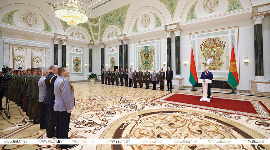 Президент выразил уверенность, что заслуженные награды и новые погоны станут для их обладателей хорошим стимулом для дальнейшей работы. «Также убежден, что, если потребуется, каждый из вас без колебаний сделает все возможное и невозможное для защиты Беларуси — надежно и с достоинством, как должен это сделать настоящий офицер», — сказал Александр Лукашенко.