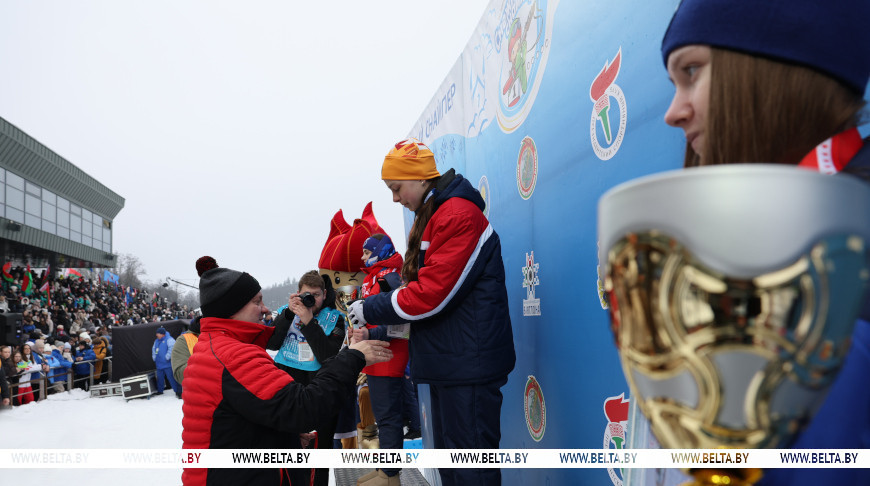 13 февраля, Минск /Корр. БЕЛТА/. Глава Президентского спортивного клуба Дмитрий Лукашенко принял участие в церемонии награждения по итогам первого дня финала республиканских соревнований по биатлону «Снежный снайпер», сообщает корреспондент БЕЛТА.